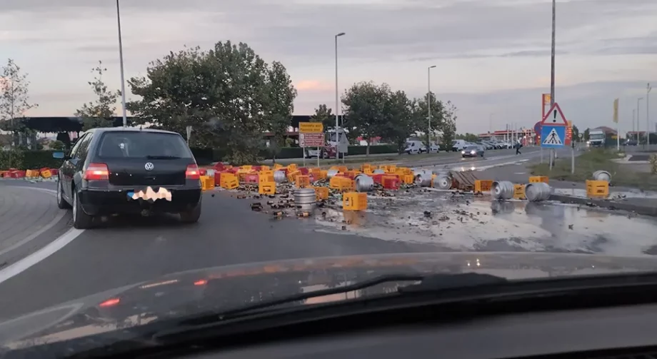 Kako se može vidjeti, po putu su rasute gajbe i bačve za točeno pivo.