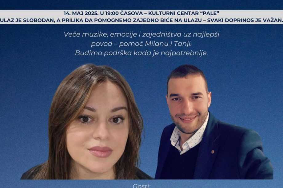 U Kulturnom centru Pale 14. maja biće održan humanitarni koncert za pomoć u liječenju Tanje Prodanović i Milana Madžgalja.