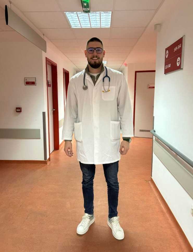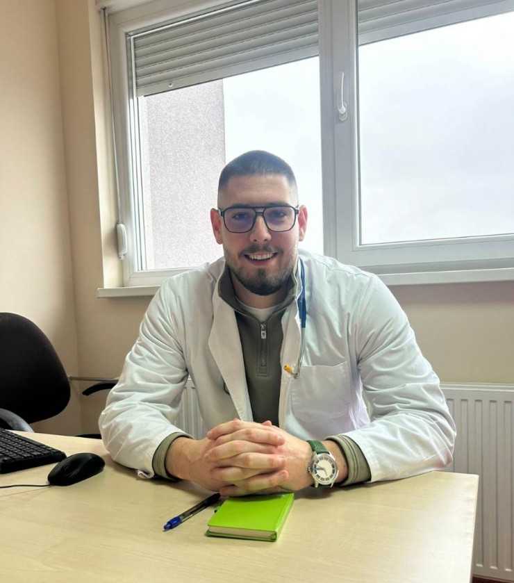 “Do trećeg ili četvrtog razreda osnovne škole svi žele da budu policajci. I onda se u meni pojavila neka želja jer mi je majka isto u struci, tetke takođe… Želio sam da ja budem taj koji će liječiti ljude. Kad je neko nekome zahvalan na osnovu toga što ga je izliječio, to nema cijenu, to je stvar unutrašnjeg mira. To se javilo u osnovnoj školi i znao sam odmah da ću da upišem medicinu. Poslije osnovne škole, upisao sam Srednju medicinsku školu u Banjaluci, bio sam odličan đak, onda je uslijedio prijemni i onda sam u oktobru 2021. godine upisao prvu akademsku godinu. Riječ je o opštoj medicini, sad sam na četvrtoj godini i mogu da vam kažem da nijedne sekunde nisam požalio. Kad se nešto voli, to se lako radi. Ne mogu da kažem da mi je to obaveza jer u tome uživam. Odem na fakultet cijeli dan, naveče trening i zna se da je dan takav.”