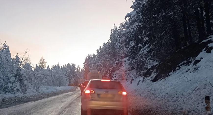 Prema njihovim riječima, do obustave saobraćaja je došlo nakon što se se dva teretna vozila zaglavila.