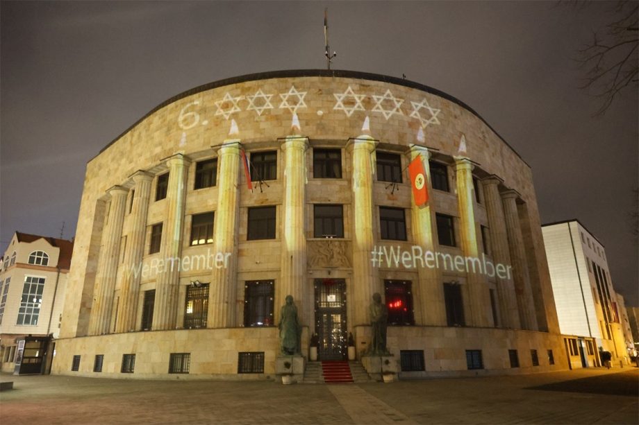 Povodom Međunarodnog dana sjećanja na žrtve Holokausta, na Palati Republike u Banjaluci večeras, 26. januara, prikazan je broj koji simbolizuje šest miliona Jevreja koji su stradali u Holokaustu.