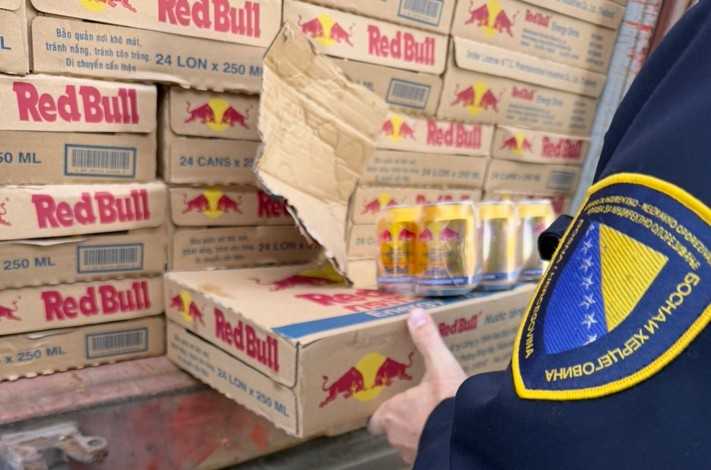 Službenici Uprave za indirektno oporezivanje u Carinskoj ispostavi Gradiška spriječili su pokušaj uvoza 69.600 limenki krivotvorenog energetskog pića Red Bull, čija se tržišna vrijednost u BiH procjenjue na iznos od 174.000 KM.