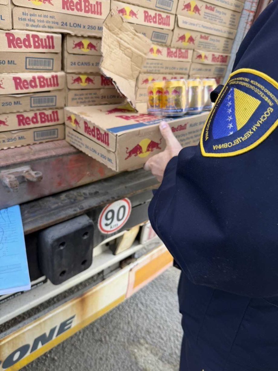Kako navode iz UIO BiH, u postupku provođenja mjera carinskog nadzora prilikom uvoznog carinjenja jedne pošiljke u Carinskoj ispostavi Gradiška, posumnjalo se da se radi o krivotvorenoj robi kojom se povređuje pravo intelektualne svojine, zaštićeno žigom RED BULL.