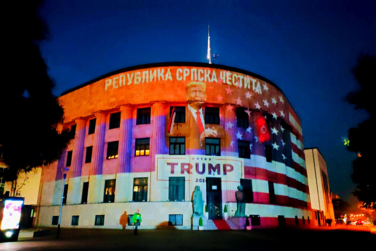 Podsjećamo, u čast pobjede Donalda Trampa na predsjedničkim izborima u Sjedinjenim Državama, Palata Republike u Banjaluci večeras je osvijetljena u bojama američke zastave.