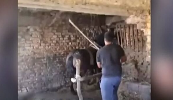 Međutim, nakon što se konj ritnuo, isti muškarac daje zlostavljaču uputu:
