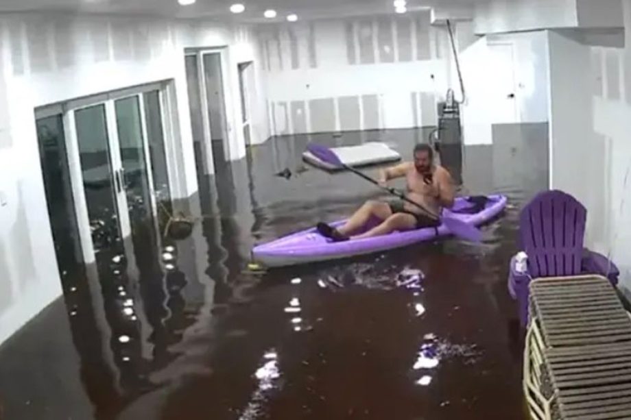Naime, objavio je video u kojem vesla kroz dnevni boravak u kajaku, a pored njega plutaju namještaj i biljke, prenosi 24sata.hr.