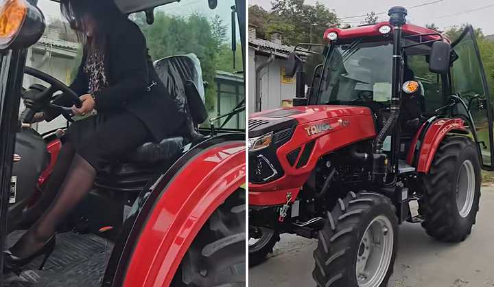 Naime, kako se vidi na snimku ona je upravljala traktorom noseći štikle.