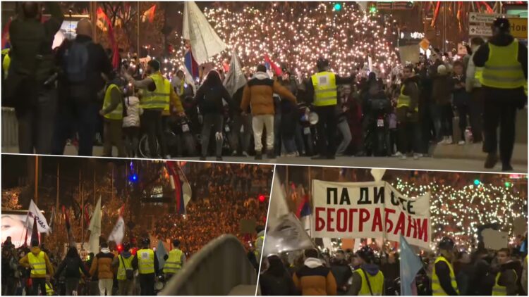 Svi su upalili svjetla na telefonima. Zatim su prešli most i ušli u Novi Sad.