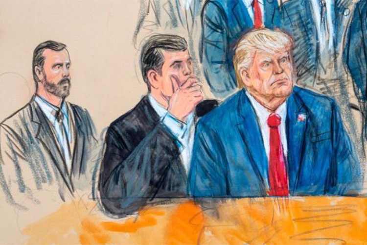 Brojnim fotografima je bilo dozvoljeno da uđu u sudnicu na nekoliko minuta prije početka saslušanja u vezi sa Trampovom optužbom u Njujorku u aprilu.