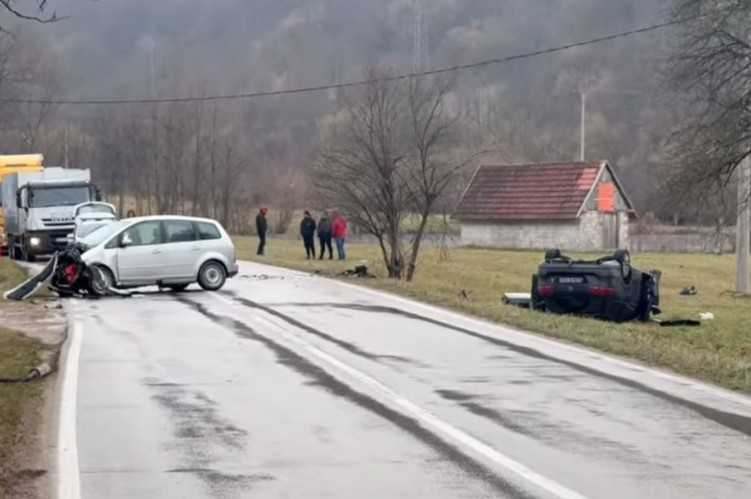 Nesreća se desila oko 10.10, a učestvovala su dva automobila od kojih je jedan sletio sa puta i završio na krovu.