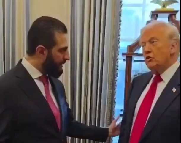 Međutim, snimak otkriva toplu dobrodošlicu koju je Ahmadu al-Šari priredio američki predsjednik Donald Tramp.