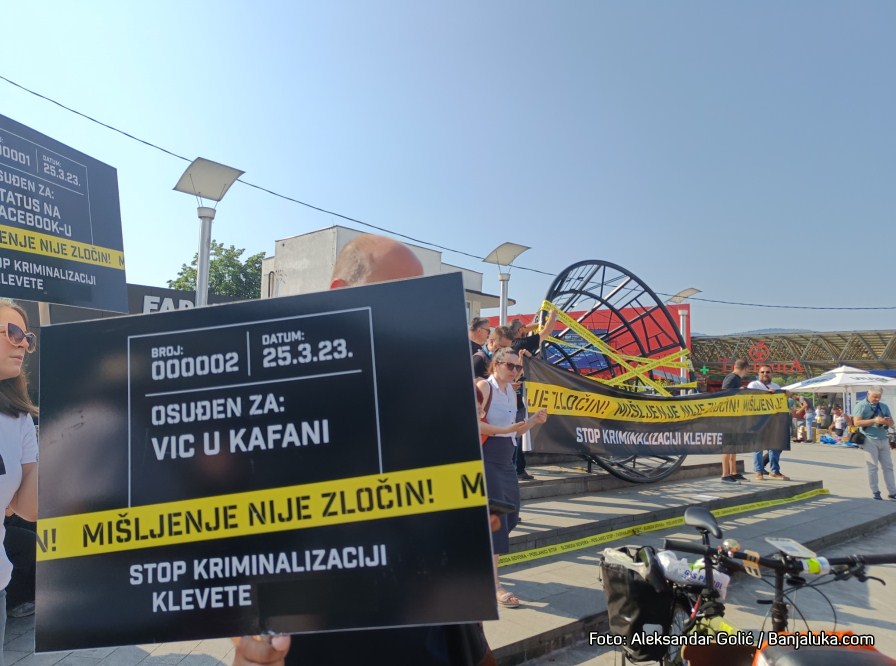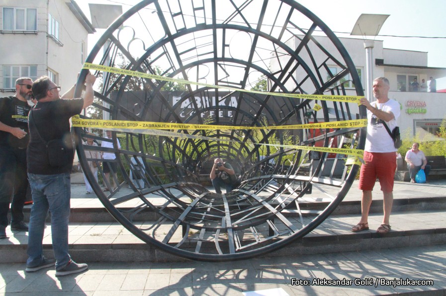 Predstavnici medija i aktivisti koji se bore za slobodu govora i mišljenja okupili su se na Trgu Krajine ispred nove govornice odakle će krenuti u protestnu šetnju do Narodne skupštine RS.