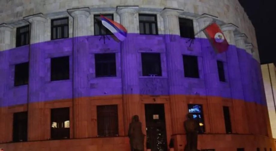 U čast pobjede Vladimira Putina na predsjedničkim izborima kao znak prijateljstva Srpske i Ruske Federacije Palata Republike večeras je osvijetljena u bojama ruske zastave.
