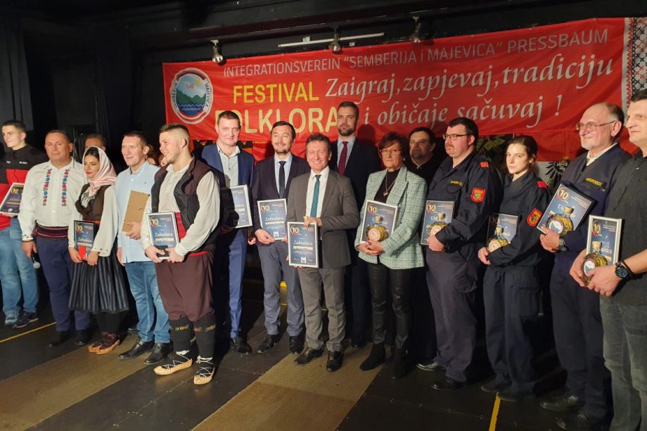 Integraciono udruženje “Semberija i Majevica” iz Presbauma (Austrija) sinoć je kulturno-umjetničkim programom obilježilo jubilarnih deset godina postojanja i rada pod sloganom “Zaigraj, zapjevaj, tradiciju i običaje sačuvaj”.