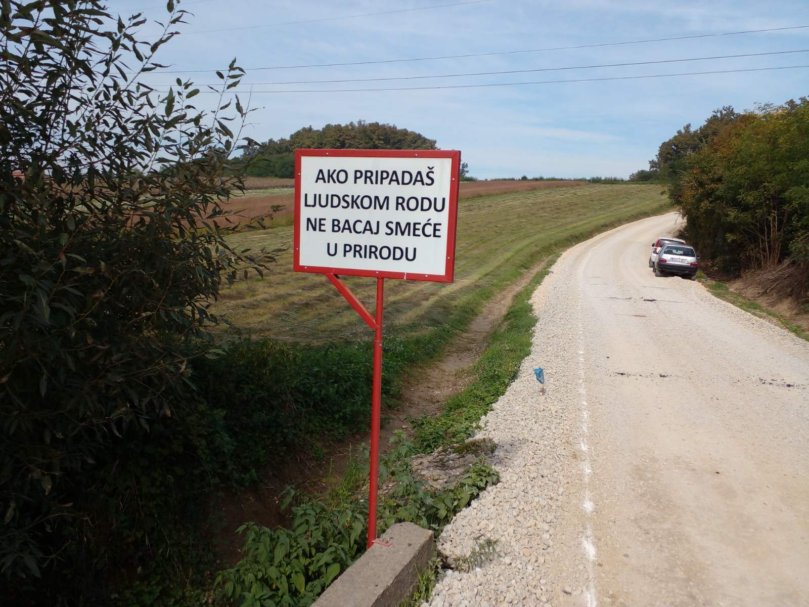 Pored nedavno asfaltiranog lokalnog puta u Gornjoj Ljeljenči kod Bijeljine, postavljeno je upozorenje nesavjesnim građanima: