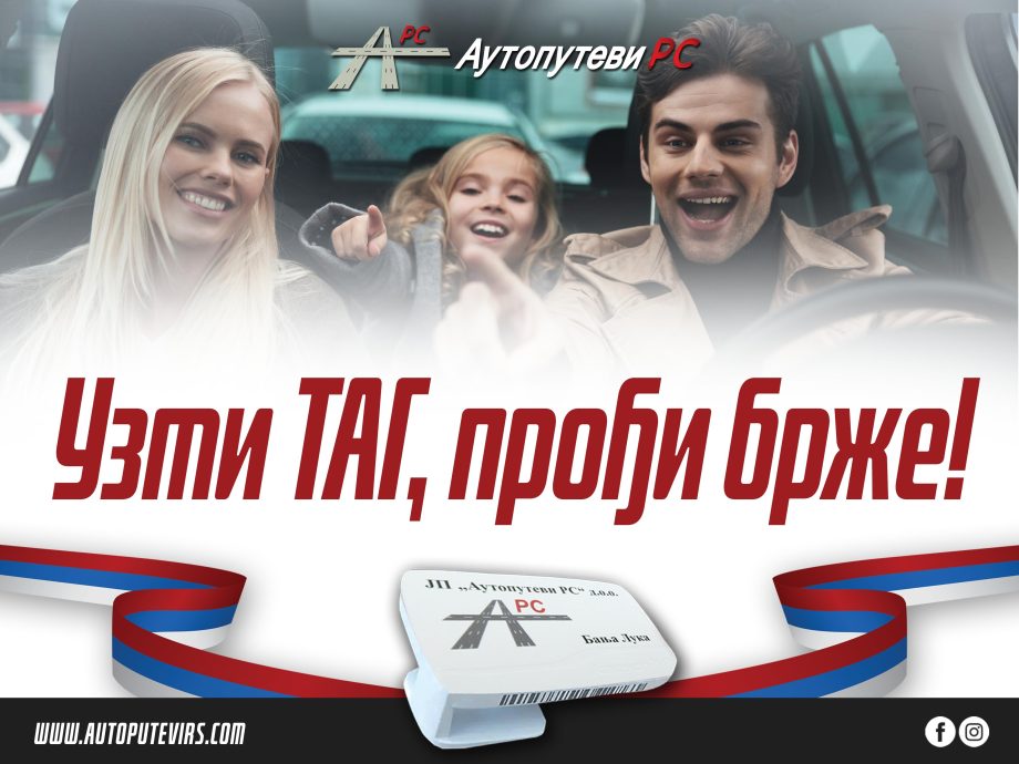 Podsjećamo vozače i sve korisnike naših usluga da najbrži prolazak kroz naplatne stanice, bez čekanja, omogućava elektronska naplata putarine, putem TAG uređaja. Vozačima savjetujemo da pravovremeno dopune svoje TAG uređaje, a u slučaju da ih još ne posjeduju, mogu da ih kupe na stanicama „Jakupovci“, „Čatrnja“, „Prnjavor“, „Kladari“ i „Kostajnica“, gdje su dostupni svakog dana, uključujući i vikende, u bilo kojem terminu.