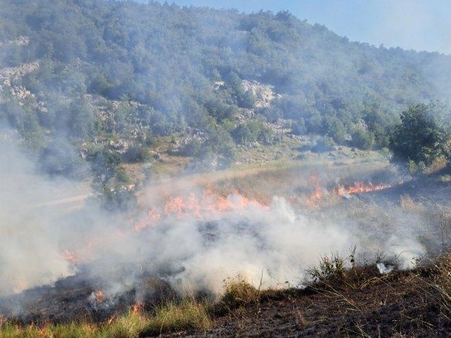 Dok je u zapadnom dijelu vatrom zahvaćena uglavnom sasušena trava, u južnom dijelu linija požara je u niskom rastinju i nije pristupačna.