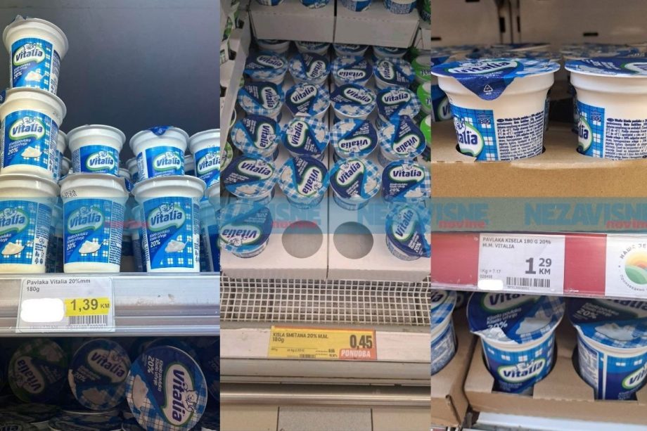 Tako se ista pavlaka mliječne masti od 20 odsto, gramaže 180 grama u trgovinama u Banjaluci prodaje za 1,29 ili čak 1,39 KM, dok se u Sloveniji može kupiti za 0,55 centi ili 1,06 KM kada je redovna cijena.