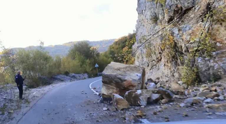 Prije Kneževa kod restorana na krivini, iz pravca Travnika, na putu se nalazi veliki odron.