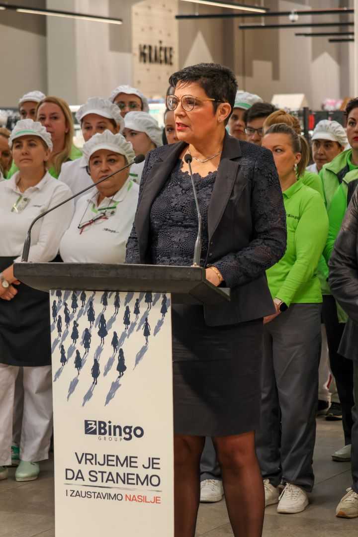 “Danas su stale sa radom sve Bingo trgovine – njih više od 230 – u cijeloj Bosni i Hercegovini. Stale su Dita, Pivara Tuzla, Ingram, Kaletex, Duka, naša fabrika tjestenine, fabrika papira, stala je i Bingo Farma – sve naše fabrike, farme i proizvodne kompanije koje posluju u okviru Bingo grupacije. Jer vrijeme je da stanemo i zaustavimo nasilje nad ženama.“ kazala je izvršna direktorica Binga Ljiljana Kunosić.