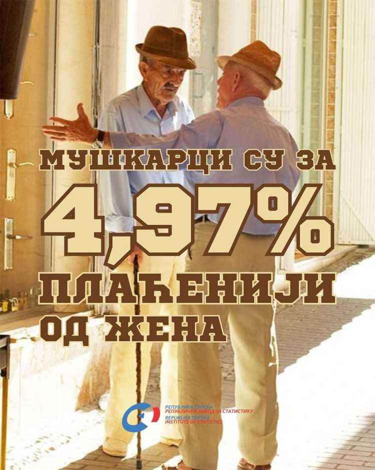 “Žene žive duže, ali muškraci su za 4,97 odsto plaćenije od žena pokazuju istraživanja u strukturi zarada u 2022. godini”, navodi se u podacima Zavoda.