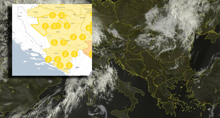 Žuti meteoalarm danas je upaljen za većinu krajeva u BiH zbog visoke temperature vazduha, koja dostiže i 36 stepeni Celzijusovih, ali i lokalnih pljuskova, grmljavine i grada.