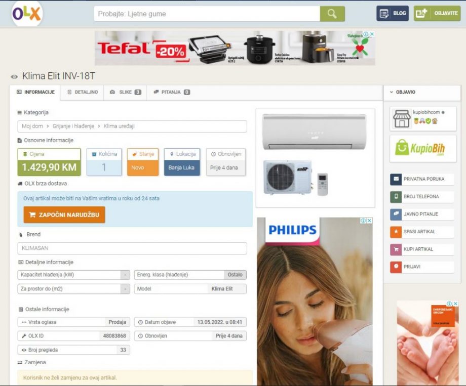 Na popularnoj olx.ba platformi postoji veliki izbor klima uređaja, a ovo su naše preporuke kako biste svoj uređaj obezbijedili na vrijeme i spremno dočekali ljetnje dane.