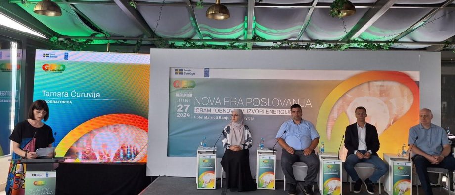 Banja Luka, 27. juni 2024. godine: U okviru projekta Zeleni ekonomski razvoj – GED, koji finansira Švedska, UNDP je u Banja Luci organizovao informativni događaj pod nazivom “Nova era poslovanja: CBAM izazovi i prilike u BiH s fokusom na obnovljive izvore energije”.
