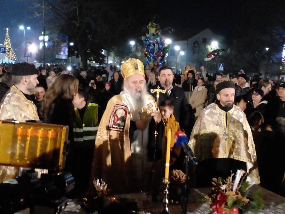 “Na Badnji dan, uoči Božića okupili smo se ovdje da se poklonimo Gospodu Bogu, jer Hristos dolazi radi nas i radi našeg spasenja. Dolazi da nas spase od smrti i od prolaznosti, da nam daruje vječnost i vječni život. Suština Božića je u našem zajedništvu, našem sabranju, međusobnoj ljubavi, praštanju i nošenju zajedničkog krsta. Našem gradonačelniku želim da se zajedno sa svojim saradnicima bori, da ovaj grad vodi putem mira, putem Božijeg blagoslova, da se ovdje čuvaju i njeguju svetinje i hrišćanske vrijednosti, opšteljudske i humanističke vrijednosti. Neka ovaj grad bude grad mira i da praznujemo Božić, jer je Božić praznik mira”, poručio je mitropolit Fotije, pozdravivši okupljene građane tradicionalnim pozdravom “Mir Božji – Hristos se rodi!”.