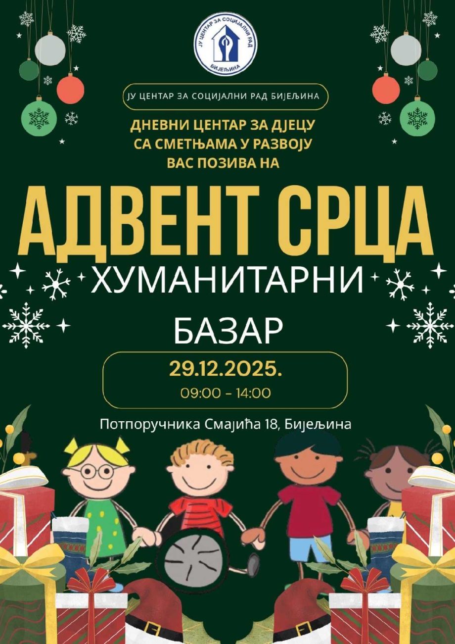 Tim povodom, iz Dnevnog centra uputili su poziv građanima da se pridruže novogodišnjem humanitarnom bazaru „Advent srca“, koji će biti održan 29.12.2025. godine u prostorijama Dnevnog centra za djecu sa smetnjama u razvoju pri JU Centar za socijalni rad Bijeljina, u periodu od 09.00 do 14.00 časova.