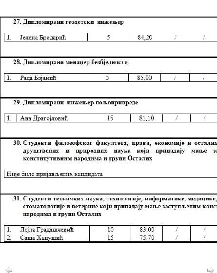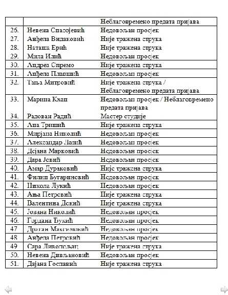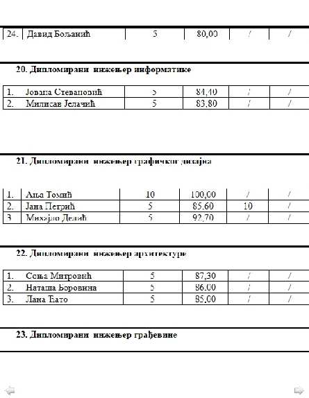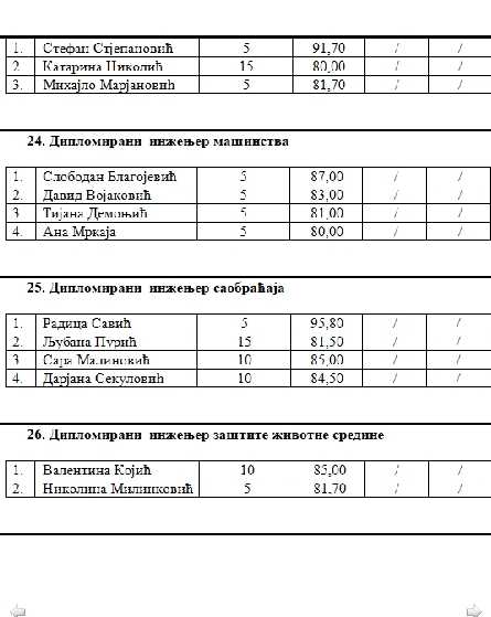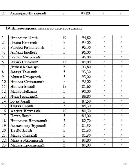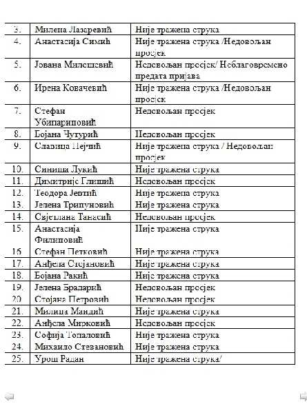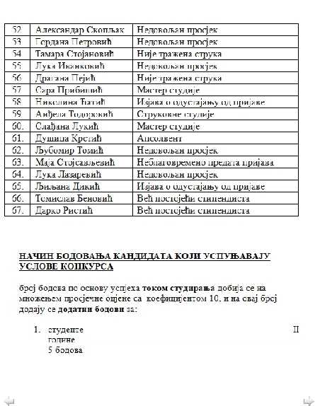 Konačna rang lista studenata koji su ispunili uslove Konkursa za dodjelu studentskih stipendija