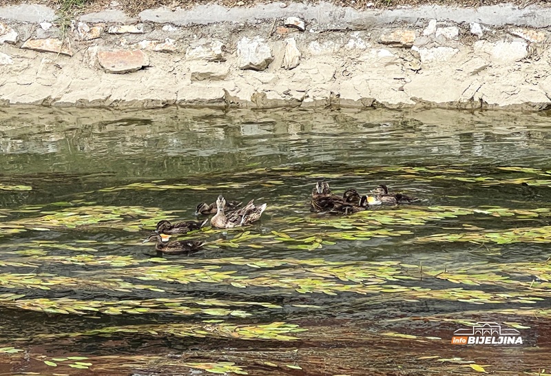 “Porodica” pataka, od čega nekolicina mladih, danas je bila atrakcija za sve koji su prošli uz kanal Dašnica u Bijeljini.