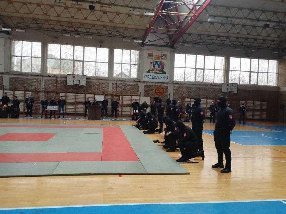 Promocija Srednje škole unutrašnjih poslova održana je u sporstkoj sali bijeljinske Gimnazije, a učenicima je prikazan dio vještina i opreme koju policija koristi u radu.