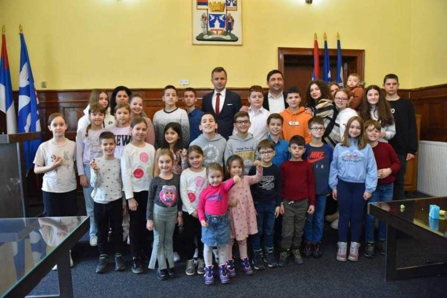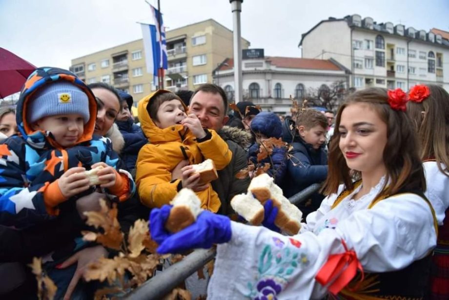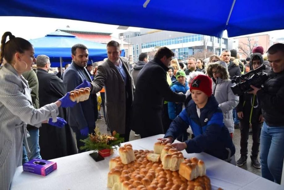 Mališani su, u pratnji svojih najmilijih, strpljivo čekali da sveštenici crkve Svetog Georgija osveštaju česnice, nakon čega ih je gradonačelnik Ljubiša Petrović uz pomoć svojih saradnika dijelio prisutnima.