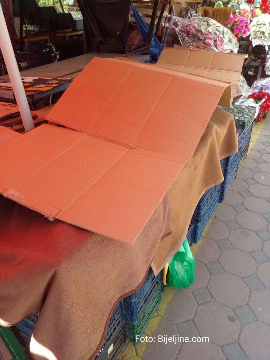 Na bijeljinskoj Zelenoj pijaci danas, već oko podneva, puno tezgi bilo je zatvoreno ili prekriveno platnima i kartonima.