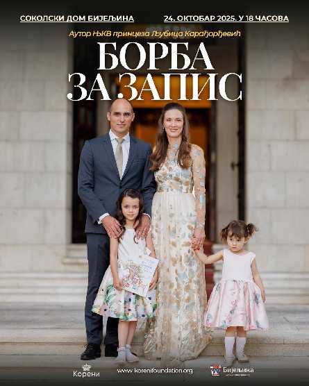 Promocija knjige „Borba za zapis“, autorke NJKV princeze Ljubice Karađorđević, biće održana u petak, 24. oktobra 2025. godine, sa početkom u 18.00 časova u Sokolskom domu u Bijeljini.