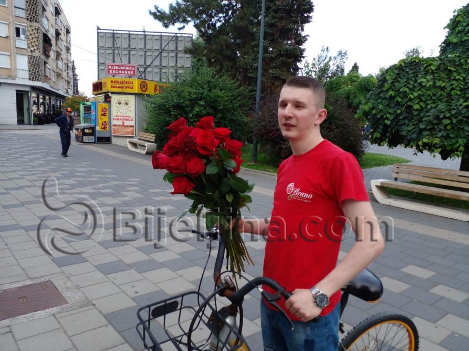 Branimira Branu Mitrovića (26) u Bijeljini svi poznaju kao momka koji će u ranim večernjima časovima, i zimi i ljeti, pristojno prići bračnom ili mladom zaljubljenom paru u bijeljinskim kafićima, restoranama i ljetnjim baštama i ponuditi prekrasnu crvenu ružu.