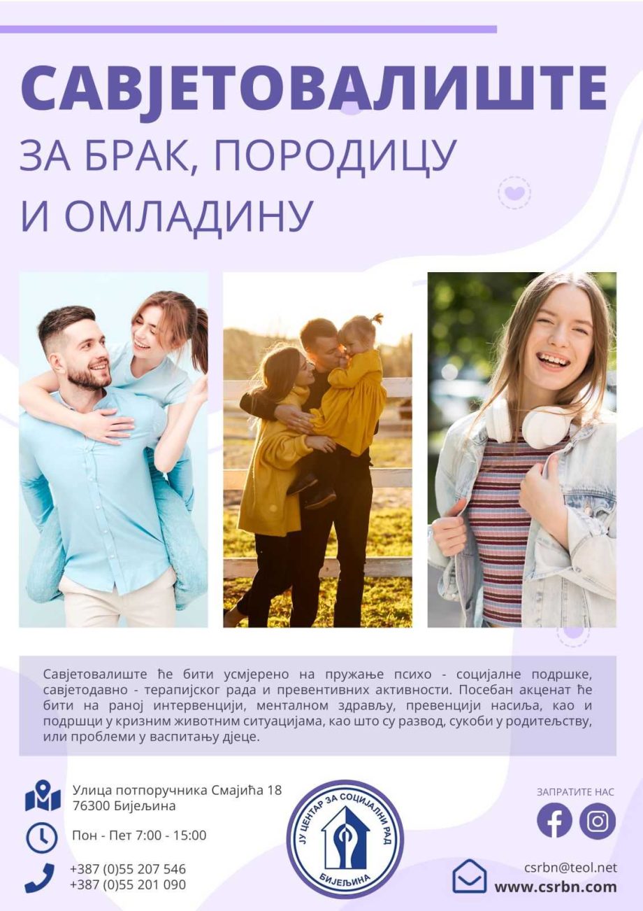 JU Centar za socijalni rad Bijeljina pokrenuo je inicijativu za osnivanje Savjetovališta za brak, porodicu i omladinu, sa ciljem unapređenja podrške pojedincima, djeci, bračnim i vanbračnim parovima, kao i porodicama koje se suočavaju sa životnim poteškoćama.