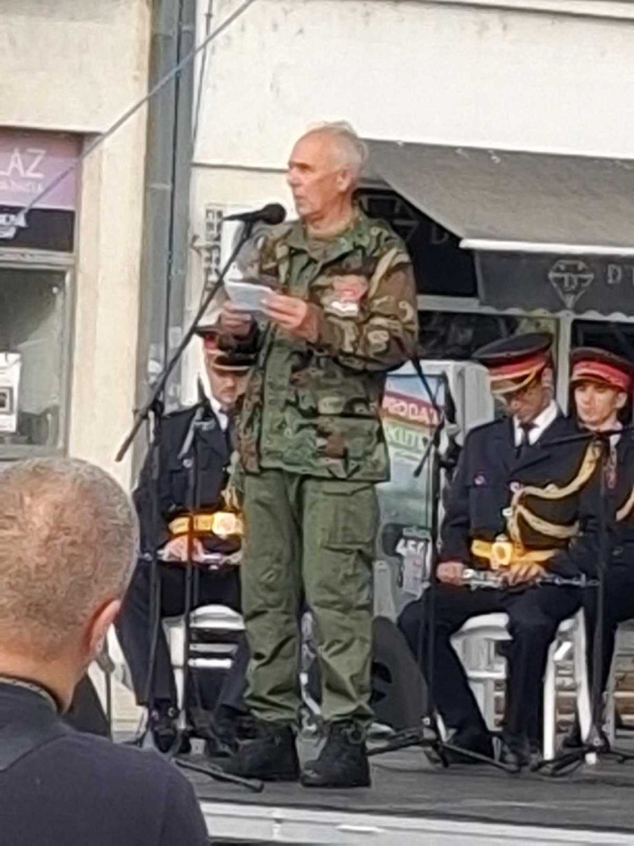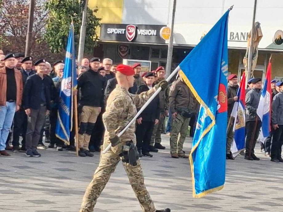 Prisutnima se obratio i general Ljubiša Borovčanin, jedan od komandanata Specijalne brigade policije, istakavši da su ratne zastave nosili najhrabriji pripadnici ove brigade, koji su radije slušali kratke i jasne komande, nego duge govore i objašnjenja.