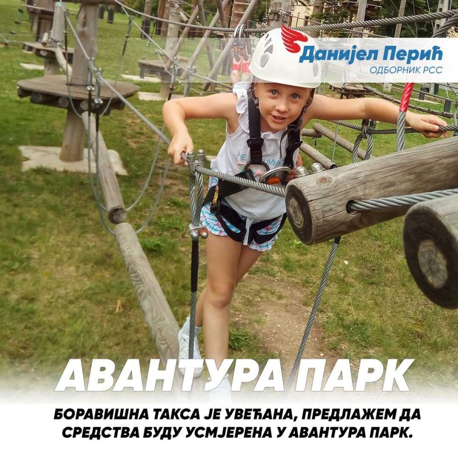 Grad Bijeljina je uvećao boravišnu taksu za domaće i strane turiste na 3 KM po noćenju i zbog toga smatram da veća sredstva, koja će biti na raspolaganju Turističkoj organizaciji, treba upotrijebiti za direktno ulaganje u turizam i turističke kapacitete. S tim u vezi, predlažem da novac od povećanja boravišne takse bude uložen u izgradnju Avantura parka na gradskom zemljištu u naselju Koviljuše – izjavio je odbornik Republičke stranke Srpske Danijel Perić.