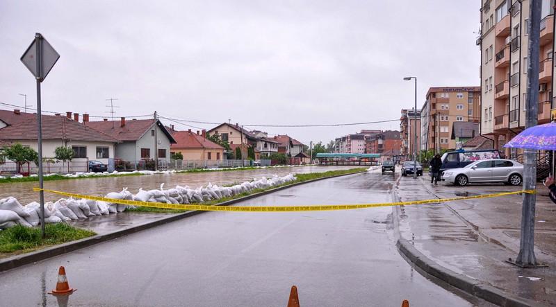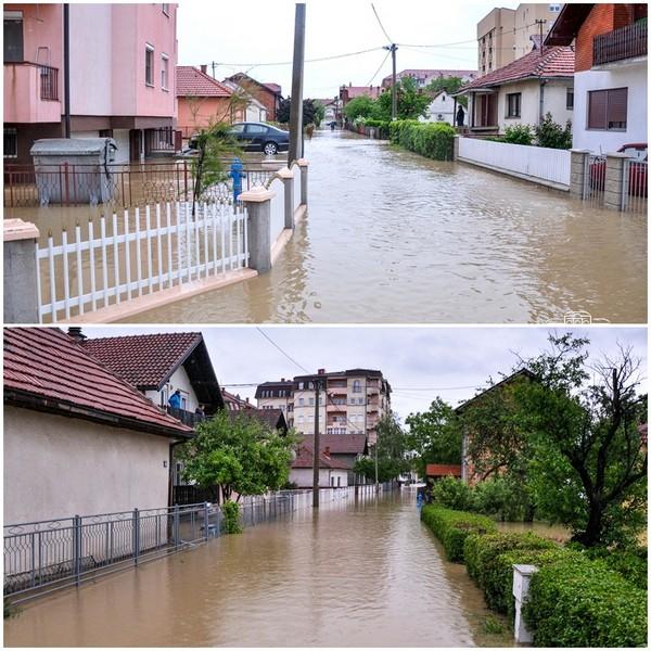 Ulicom Dušana Baranina, uz kanal Dašnica, stanovnici okolnih kuća i zgrada neumorno su u kabanicama redali vreće sa pijeskom kako bi zaštitili svoje domove, ali voda je bila neumoljiva.
