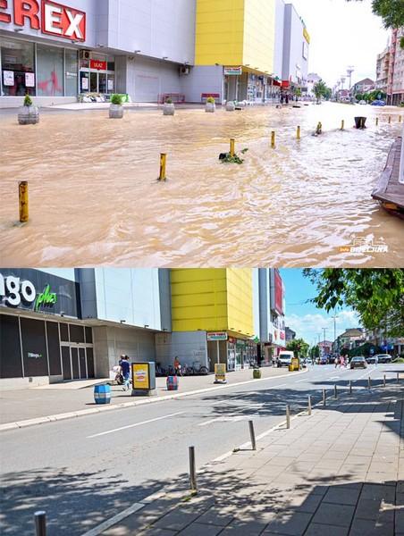 Sve gradske ulice u užem centru grada bile su do jednog metra pod vodom, a građani su se kretali u kabanicama i čizmama, nadajući se da će vodeni talas što prije početi da slabi.