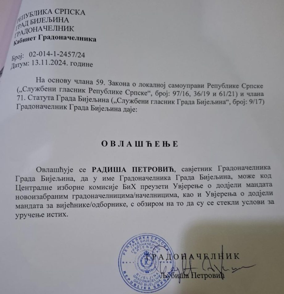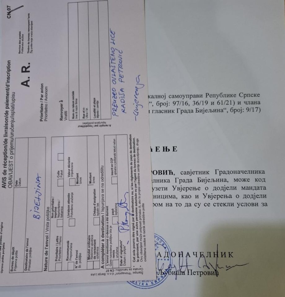 “Sve sertifikate za novoizabrane odbornike podigao je savjetnik gradonačelnika Radiša Petrović, u četvrtak 14. novembra 2024. godine u jutarnjim časovima, po ovlaštenju gradonačelnika. Sekretar Skupštine se istog dana uredno najavio CIK-u, ali je po dolasku obaviješten da su sertifikati već preuzeti.”