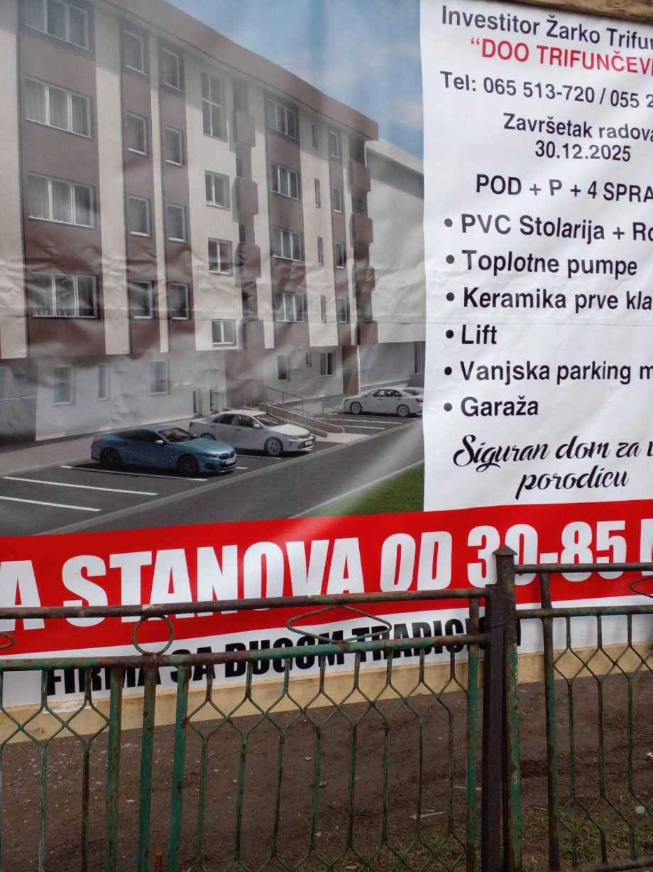 Građevinska firma “Trifunčević“, koja je izgradila na stotine stanova u Bijeljini, ovih dana otpočela je izgradnju još jednog stambenog objekta, sa ukupno 24 stambene jedinice. U pitanju je Ulica Sofke Nikolić, u strogom centru grada.