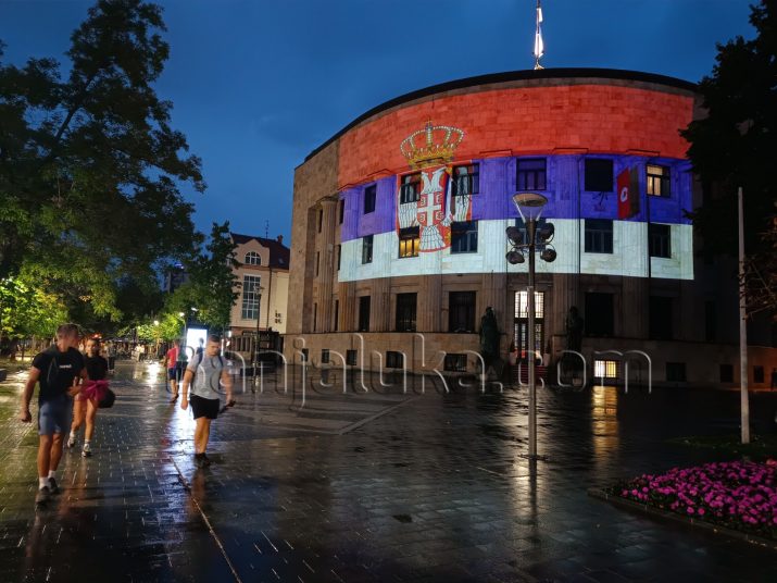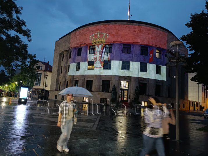 Povodom obilježavanja Dana srpskog jedinstva, slobode i nacionalne zastave večeras je Palata Republike osvijetljena bojama zastava Republike Srpske i Srbije,
