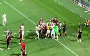 Duel turskog prvoligaša Adana Demirspora i italijanske Salernitane trebao je pružiti dobar fudbal, ali je meč trokut turnira “Angelo Iervolino” obilježila tučnjava fudbalera na terenu.