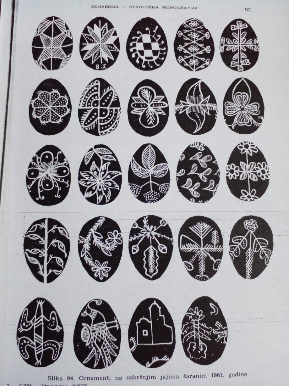 “Na Veliki četvrtak šarala su se jaja za Vaskrs. Jaja su šarana voskom i “šaraljkom”, napravljenom od komadića lima ili perom za pisanje. Šare izvedene perom tanje su i ljepše.
