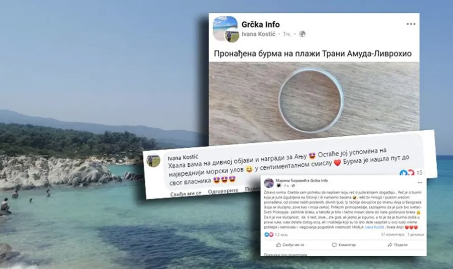 – Poslali su mi objavu u inboks, sve se poklapalo, i mjesto i izgled burme, samo sam čekala da potvrdi da je naša. Napisala sam joj poruku šta naša ima ugravirano – moje ime i datum vjenčanja. Nisam smjela prije vremena da se radujem, a onda je žena potvrdila da jeste naša. Uh, naježila sam se i suze su mi krenule, i jesam i nisam vjerovala da ćemo je pronaći, ipak je to more – kaže Marina za Telegraf.rs.