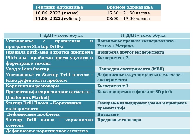 Učešće na “START UP DRILL” je besplatno a mjesto održavanja je sala za sastanke Centra za kulturu “Semberija” (drugi sprat).