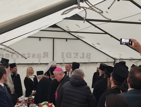 Ta čast ukazana je gradonačelniku opštine Peć Gazmendu Muhadžeriju, koji je sjedio uz patrijarha srpskog za trpezom.